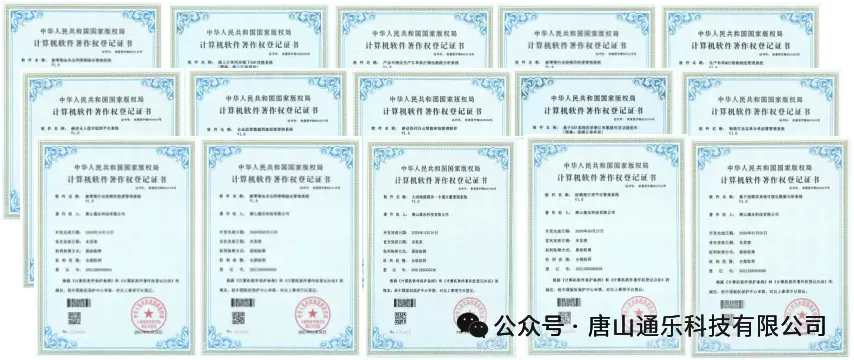 唐山通乐科技作为“高新技术企业”,拥有29项自主知识产权,自主研发的软件系统涵盖了智能仓储WMS系统、生产MES系统、设备联网及数据采集平台、招投标电子评价系统、计时计件薪酬核算系统等,为企业数字化转型提供强有力的技术支撑。