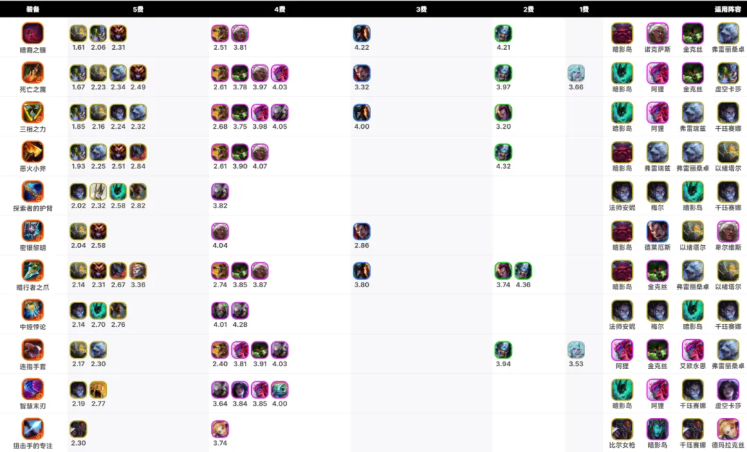 16.6版本更新,神器强度也是大洗牌,今天跟大家分期一期数据网站的神器使用指南,针对1-5费不同棋子的适用机制做推荐。