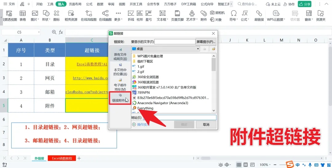 有时想要分享某个附件,但又不想直接发送文件,担心文件过大或占用过多存储空间,此时附件超链接是个不错的选择。先点击【超链接】按钮,在弹出窗口中选择【链接附件】选项。然后,在文件资源管理器中找到要分享的附件,选中后点击确认。