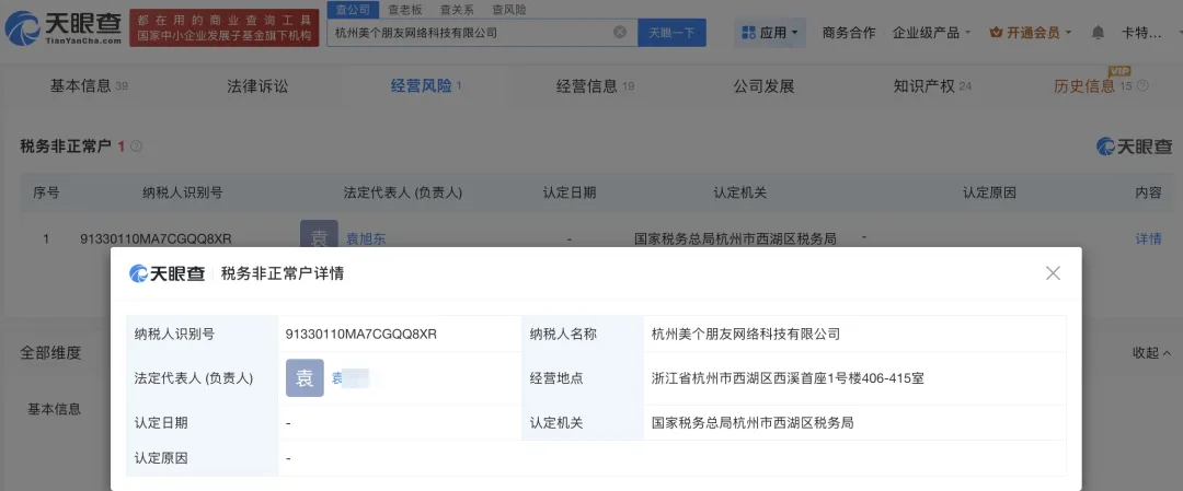 天眼查显示,该公司还被列为税收非正常户。
