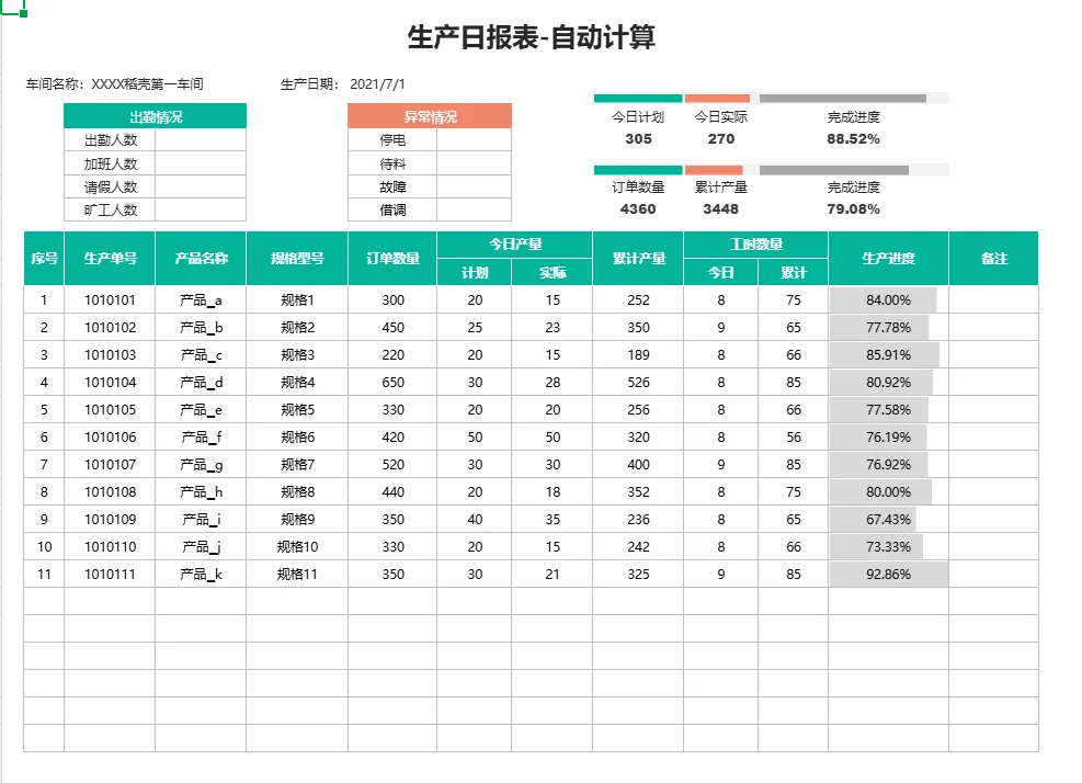 45款《生产日报表模板》excel电子版,可免费下载打印