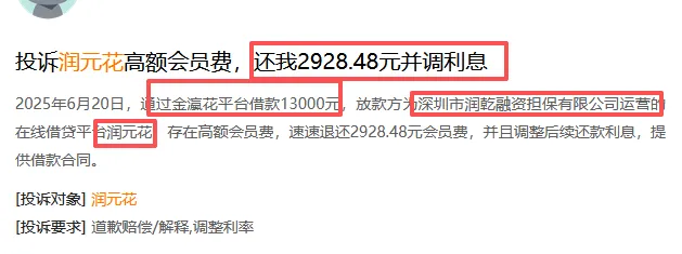 金融监管投诉:拨打银保监会热线举报润元花“以会员费名义收取砍头息”的违规行为,重点说明润乾融担作为运营方的连带责任。