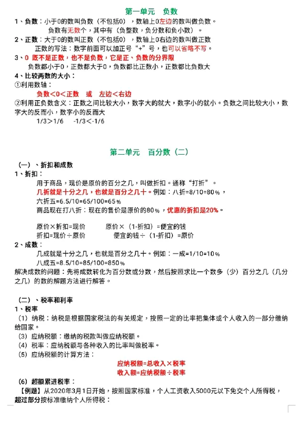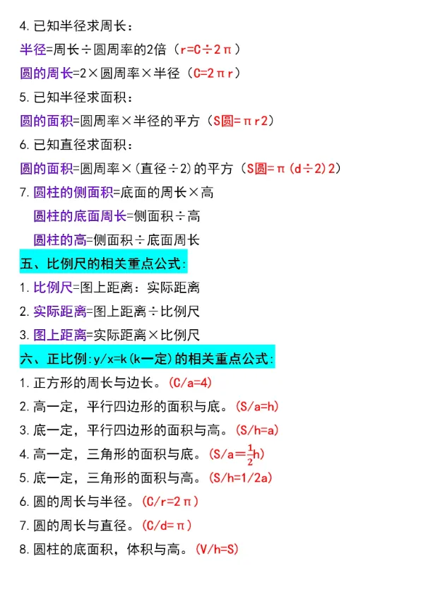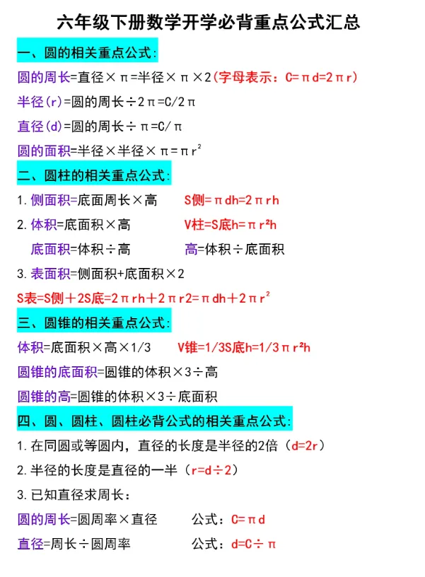 六年级下册数学开学必背重点公式汇总【可下载电子版】
