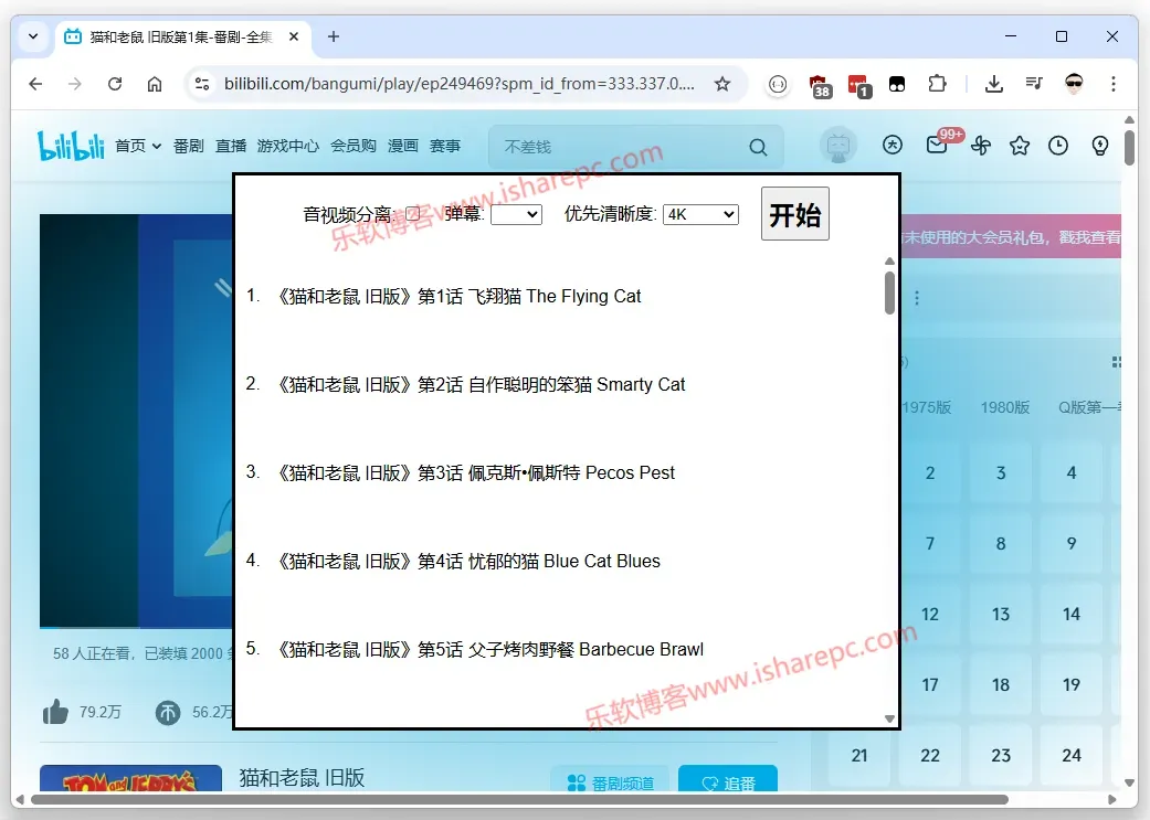 点击后会罗列出合集中的所有的视频,可以选择清晰度、是否下载弹幕、以及下载是否将音视频分类。