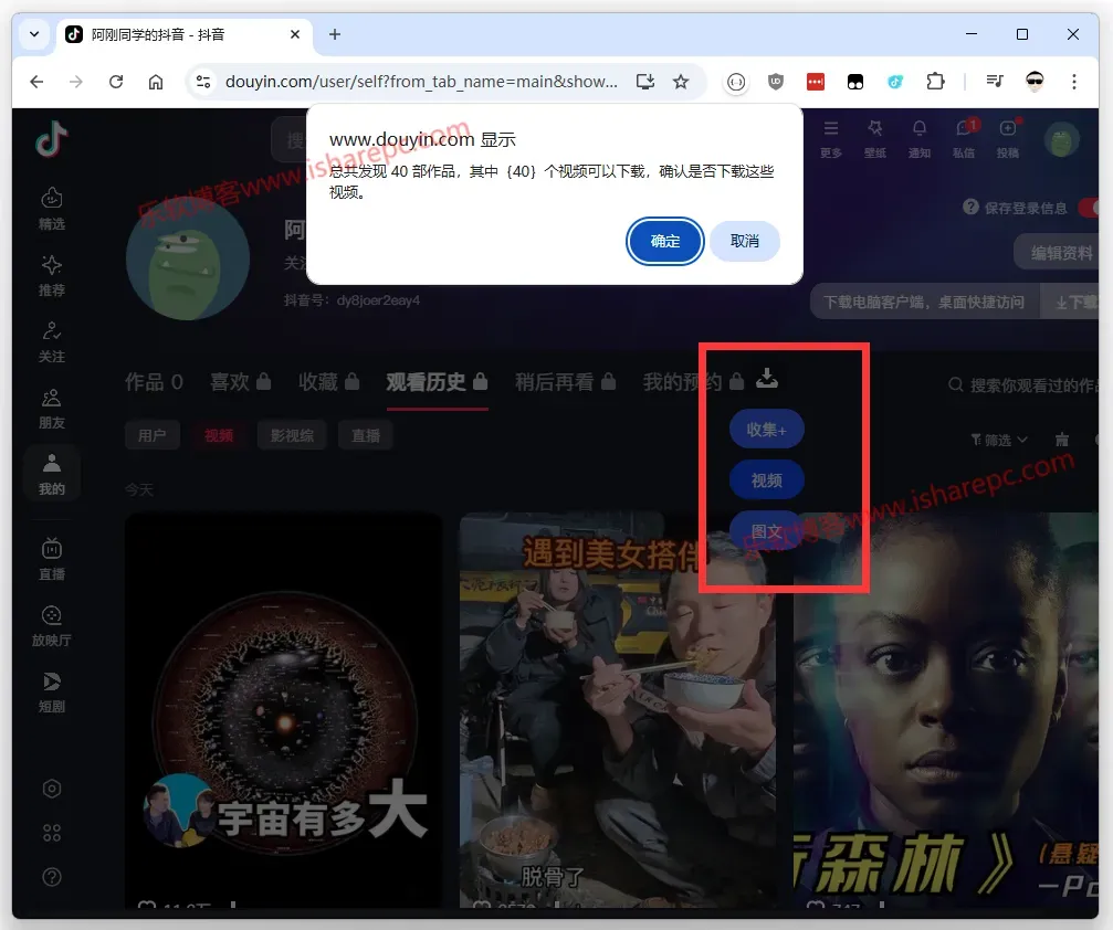 它的批量下载功能更是厉害得没话说,简直就是“王炸级别”的存在!它不仅能一键把用户发布的全部视频打包下载下来,还能批量获取收藏夹内容、喜欢列表、观看记录等。有了阿抖插件,抖音资源的高效采集和系统化整理变得轻而易举,它就是内容创作者的“资源管理神器”,强烈推荐给大家!