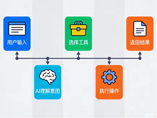 你对智能助手说:“帮我查查今天天气,然后预约去公司的车” 1. AI“听懂”你的需求(需要天气+打车)2. AI选择合适的工具(天气API+打车API)3. AI生成调用参数(城市=北京,目的地=公司)4. 系统执行工具调用,获取结果5. AI整合结果,用人话回复你