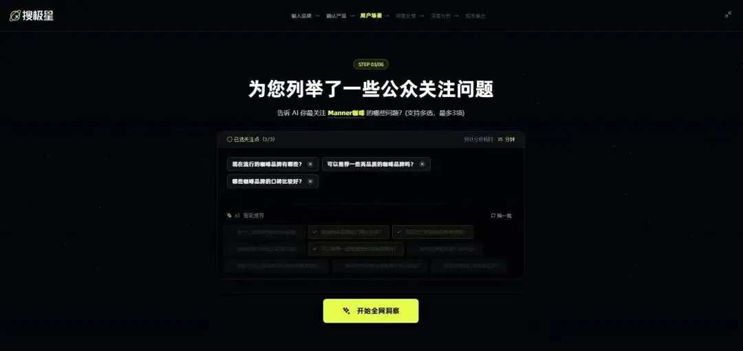 其二,场景化监测贴合真实需求。输入品牌或产品关键词(如雀巢雪糕、青桔共享单车、中公教育等)后,其“场景化提问库”可根据行业特性,自动生成数百个高仿真用户提问,如“共享交通工具里哪个服务商的车最多?”“巧克力味雪糕什么牌子的好吃?”等,贴合真实搜索场景。生成一份产品的监测报告只需从中选择3个问题,保证搜索监测和分析的数据更加精细专业。同时,平台可监测20+项核心指标,包括AI搜索可见度、同类产品推荐平均顺位、品牌引用比、AI品牌感知、用户口碑及竞品洞察等,监测维度全面且精准。