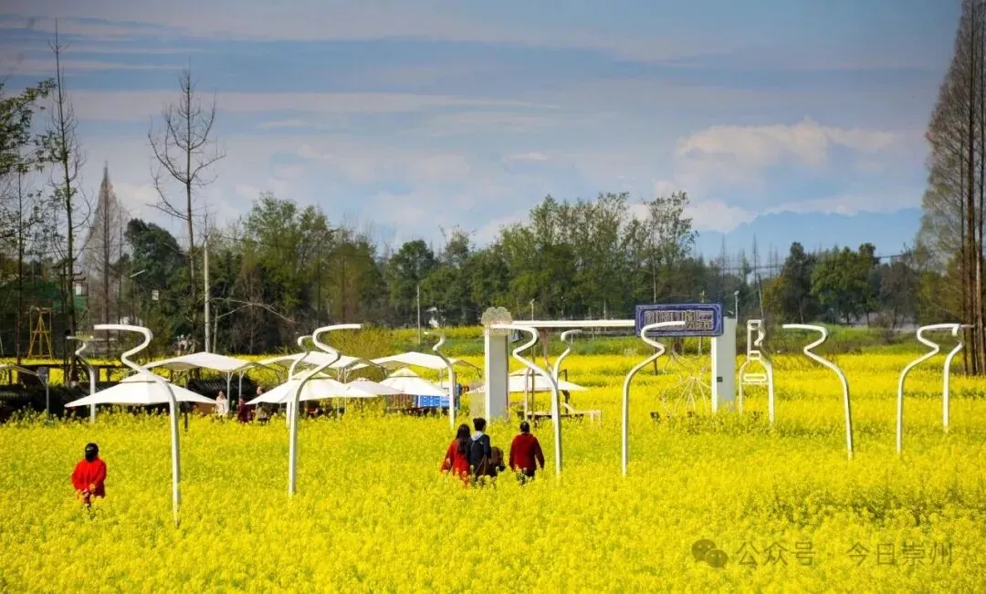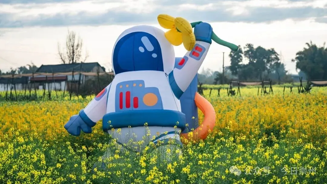 漫步花田小径,清甜花香漫溢鼻尖,抬头是云雾缭绕的雪山,低头是随风摇曳的金色花浪,随手按下快门,都是能惊艳朋友圈的春日大片。花田里还藏着不少惊喜打卡点:憨态可掬的大熊猫、手持油菜花的宇航员、随风转动的蓝色风车……童趣与浪漫撞了个满怀,让每一次驻足都充满仪式感。