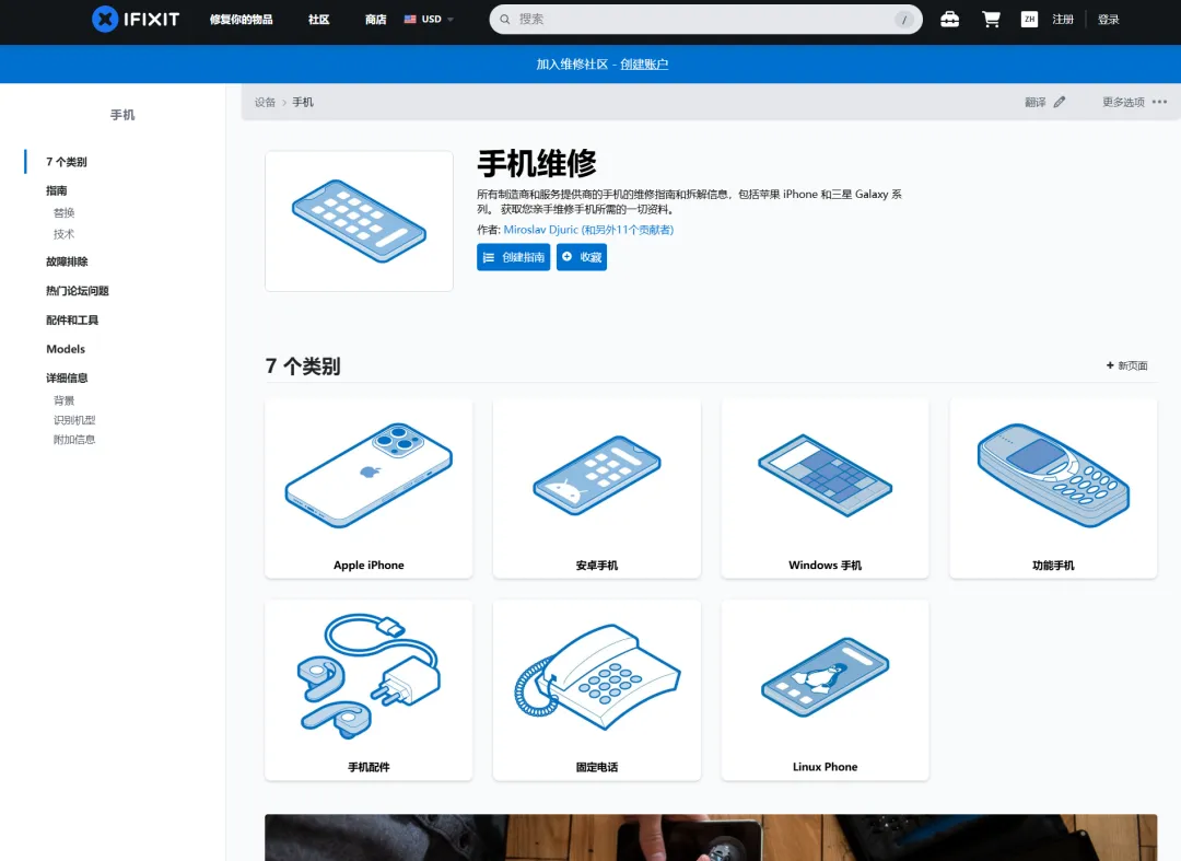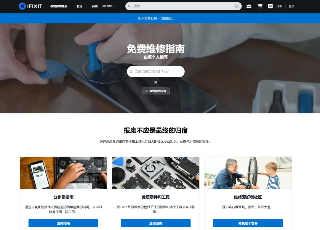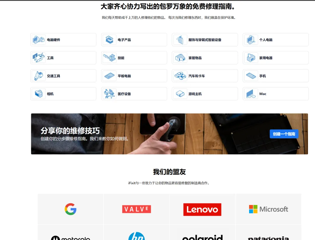 iFixit是一个免费维修指南,如果我们的手机出问题了,可以在里面寻找方法,帮助修复好我们的苹果或安卓设备