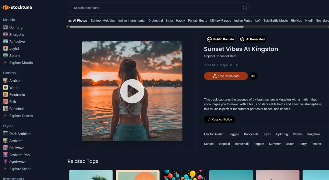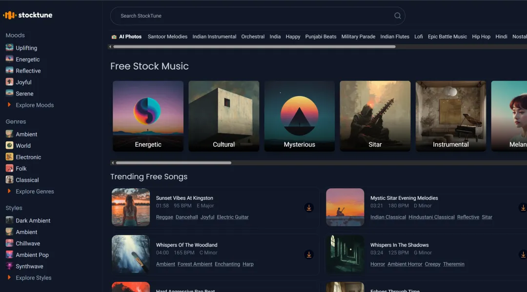 音乐stocktune是一个免费音乐和音效素材的平台