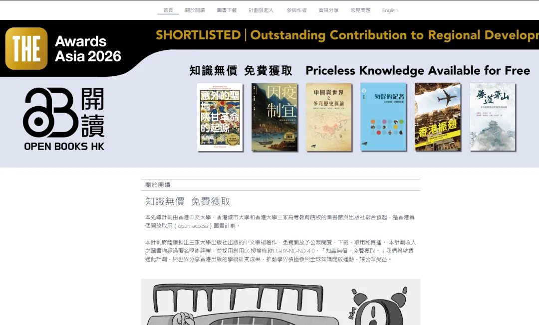 01HK图书计划是香港首个由香港中文大学、香港城市大学和香港大学三所高校图书馆与出版社联合发起的开放取用图书计划网站,免费开放三家大学出版社出版的中文学术著作,提供阅读、下载、取用