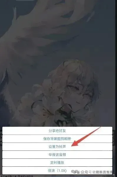 2. 在弹出的功能弹窗中,找到并点击【设置为铃声】选项