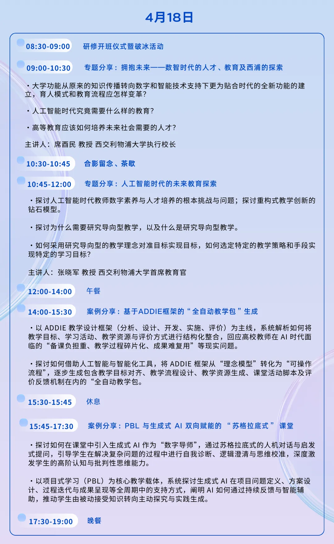 主题1 拥抱未来——数智时代的人才、教育及西浦的探索主题2 人工智能时代的未来教育探索
