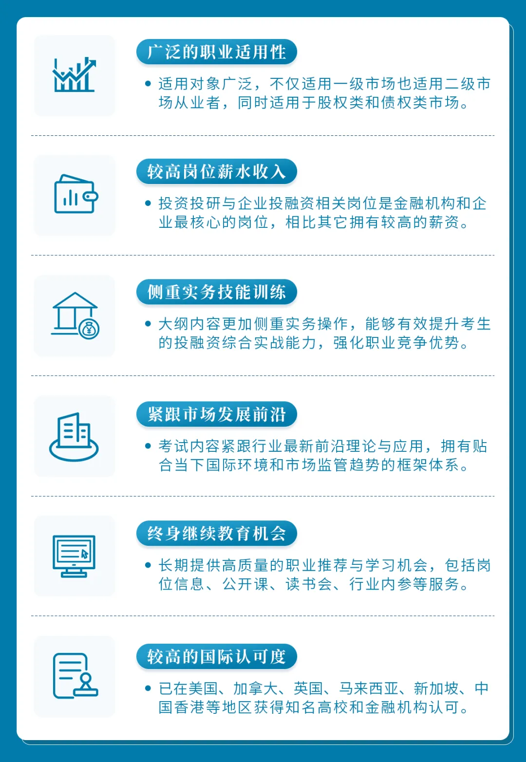 获得CIFA认证表明您已经系统掌握投融资实务所必需的知识,能够在求职、跳槽、职场晋升及人脉拓展等方面为你赋能。