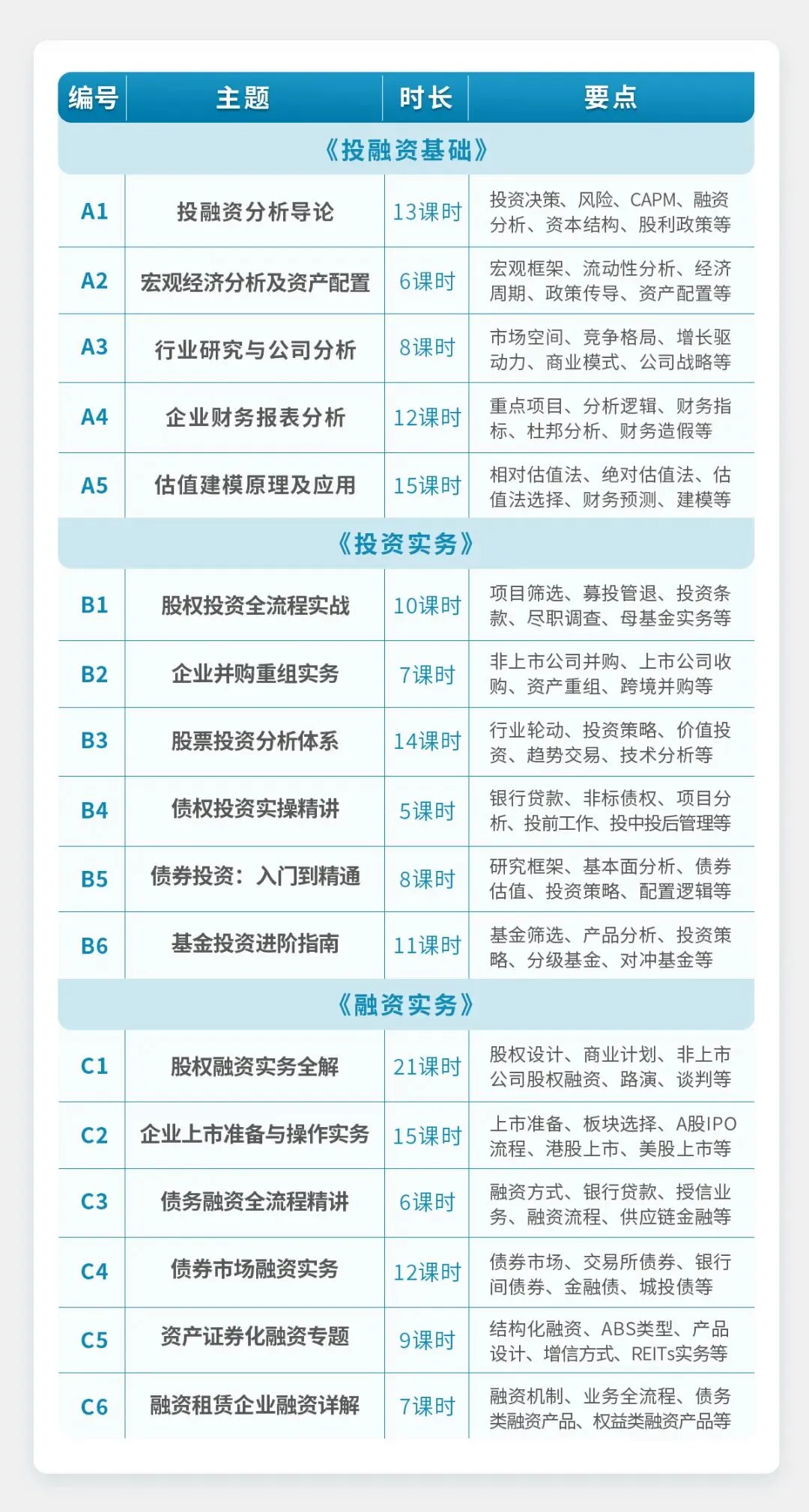 | 科目三 | 融资实务 | 15:00–16:00 |