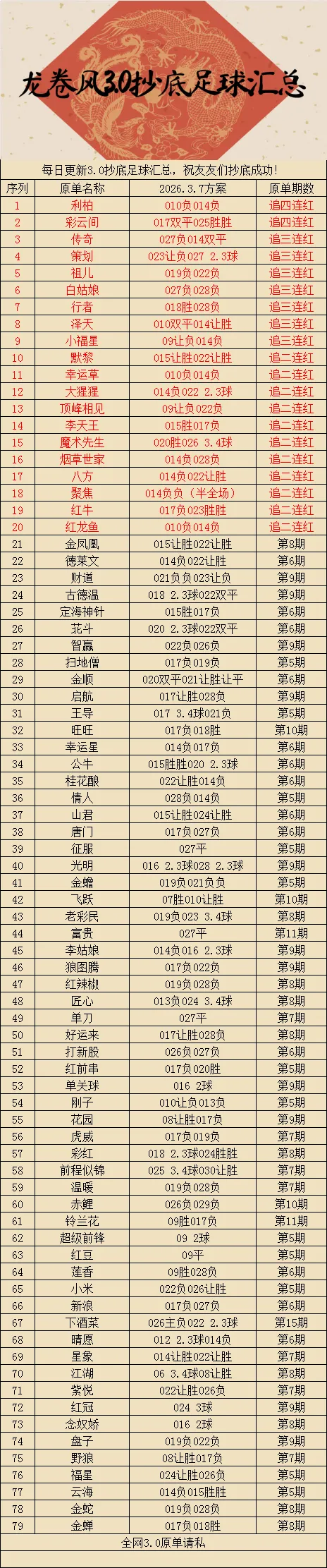 3月13日足球3.0抄底合集、足球3.0抄底汇总、龙卷风抄底3.0、足球抄底!今日更新 推荐 足球抄底合集 全网最稳抄底3.0 每日足球推荐 方案更新稍晚,店内忙公众号未发的情况就请添+微信获取实时方案查看更多新单或稳胆 今日更新 需要最新一手汇总单的朋友可以加V朋友圈查看 本文章只支持当前数据 临场数据有大的波动请谨慎参考, 联系我们, 朋圈每天会有免费临场私料。 信誉实力鸿单稳推,关注交流免费推荐!