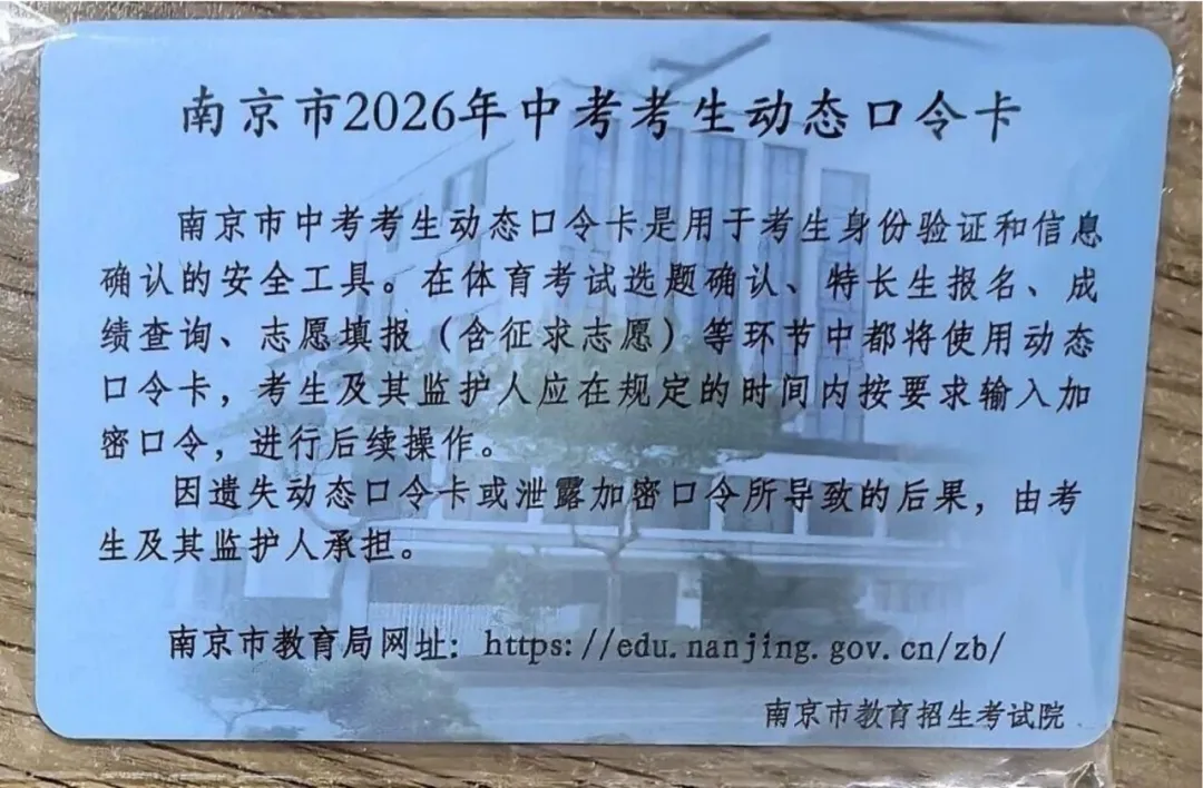 关乎特长生报名!南京中考动态口令卡使用说明与注意事项!