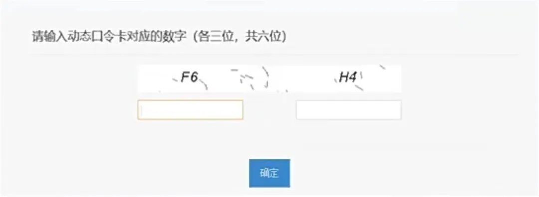 登录成功后,进入输入动态口令卡页面,如下图所示:
