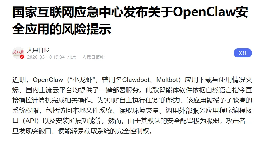 ⚠️ 更值得警惕的是安全风险:OpenClaw 需要系统级的权限,一旦被配置不当或者被利用,可能导致数据泄露甚至财产损失等严重后果。