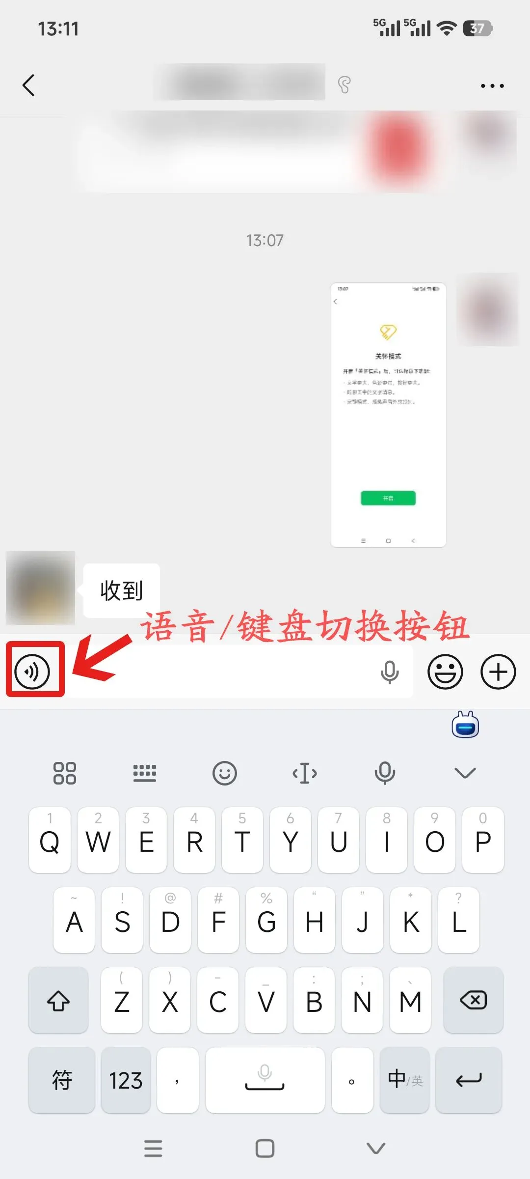 (1).在聊天框左下角,找到一个“小喇叭”或“声波”的图标。