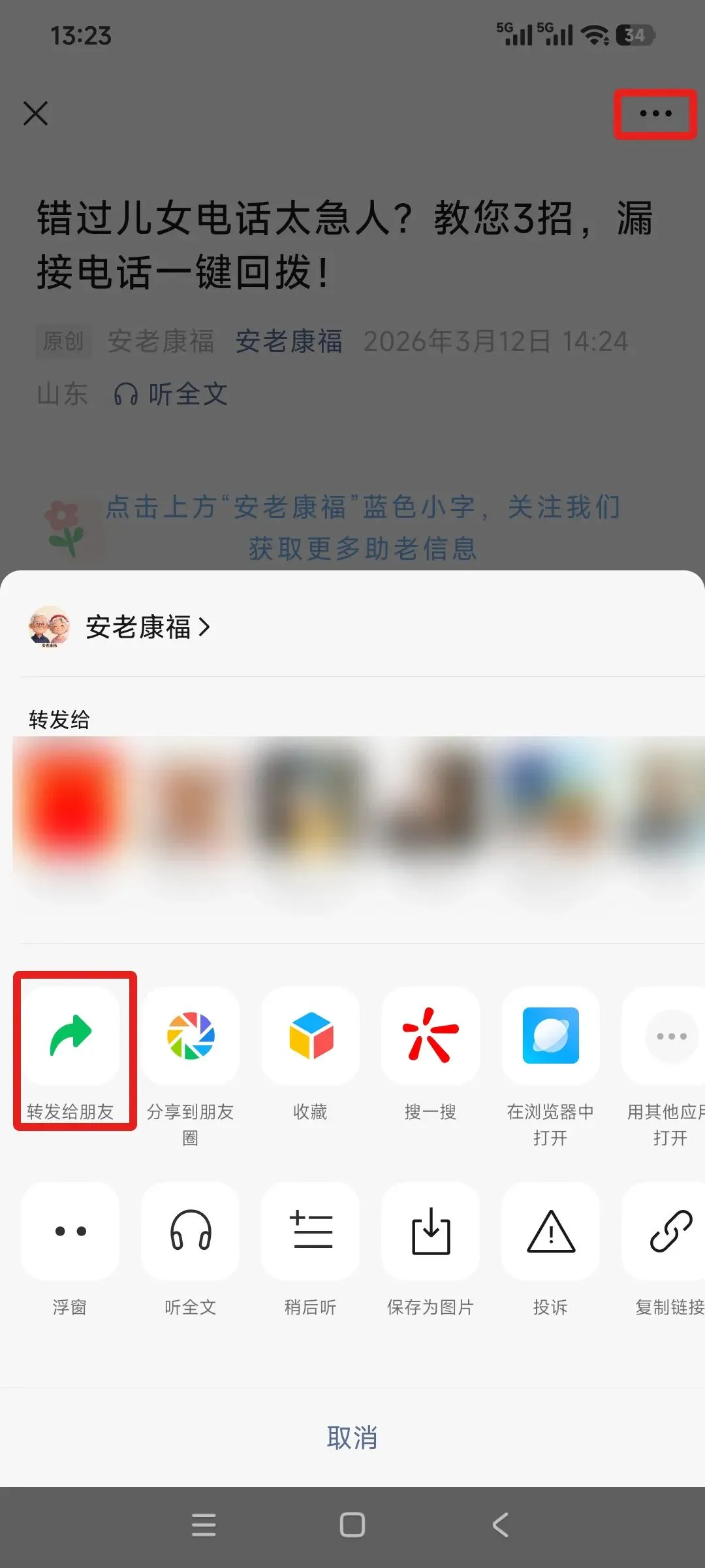 看到有趣的文章、重要的通知,怎么分享给老朋友?