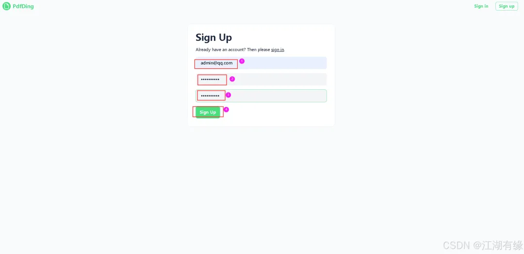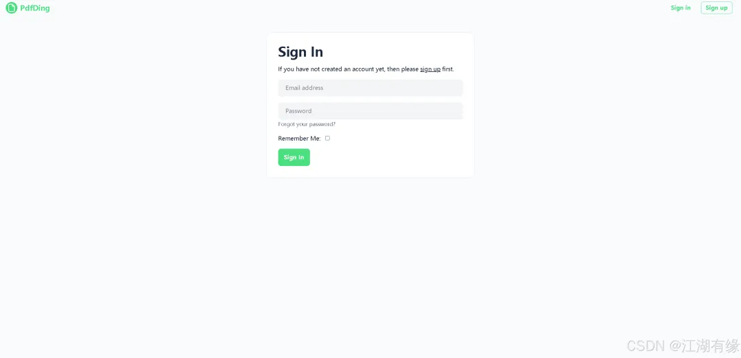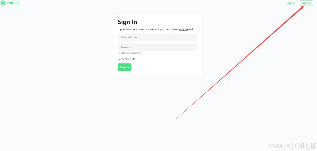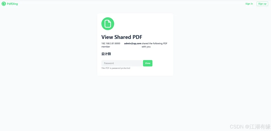 访问地址:http://服务器IP地址:8000,将IP替换为自己服务器的IP地址,进入到PdfDing登录页。如果无法访问,则检查服务器防火墙是否设置,云服务器的安全组端口是否放行等。