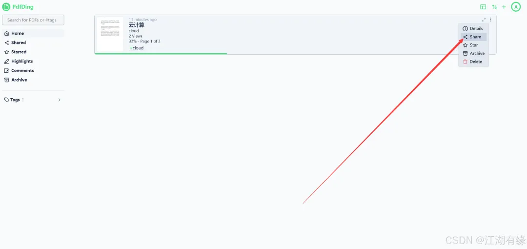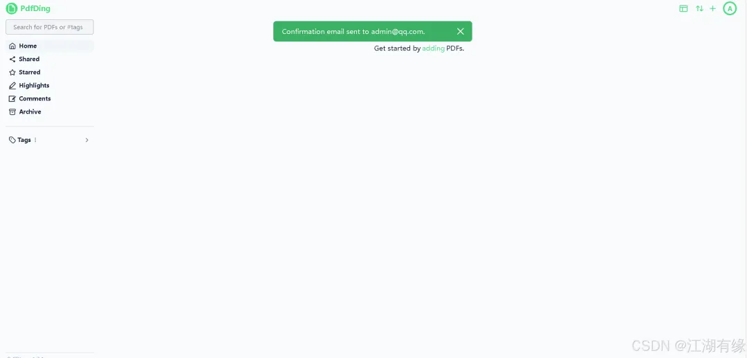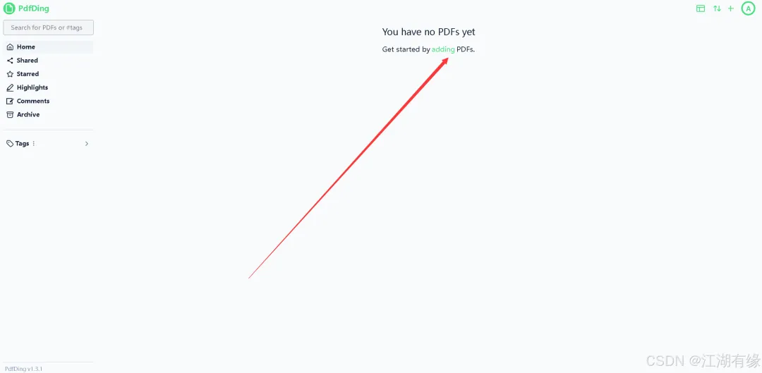 点击PdfDing首页的“adding”选项,进入文档上传页面。