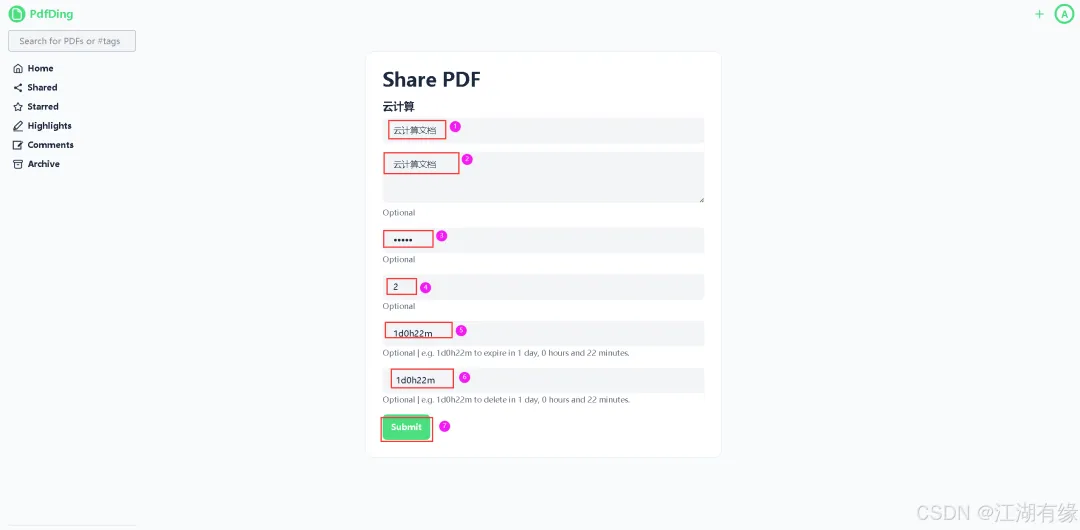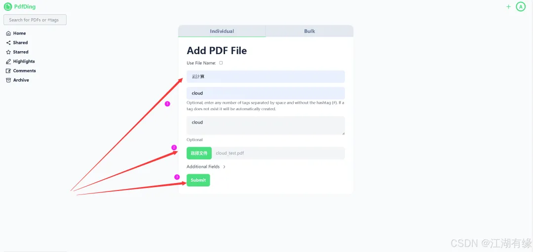 填写上传文档的名称、标签、描述信息等,将本地文档上传到PdfDing。