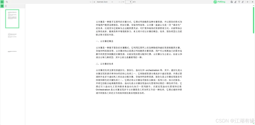 双击上传的PDF文件名后,可在线浏览其内容,效果如下所示: