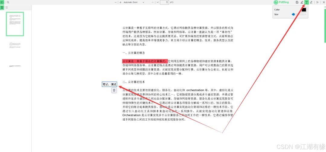 文本注释功能:点击文本图标,可以在文档界面任意处进行编辑文字注释。
