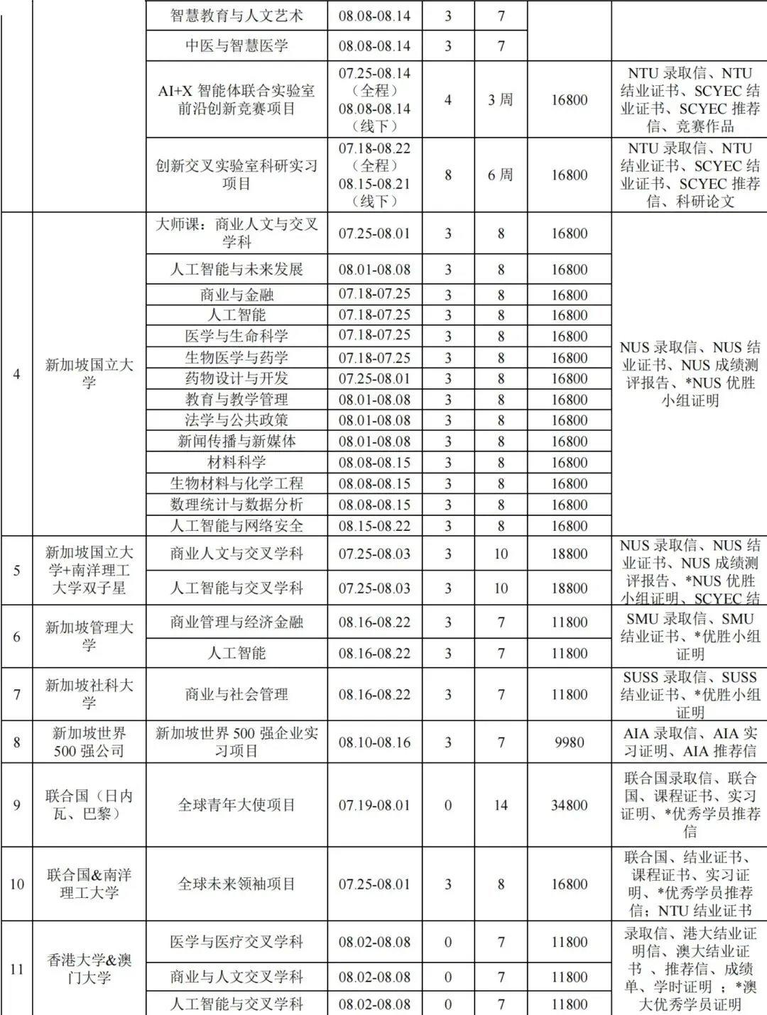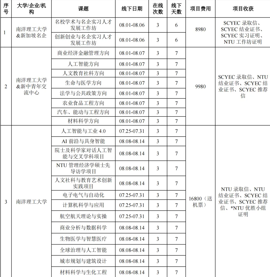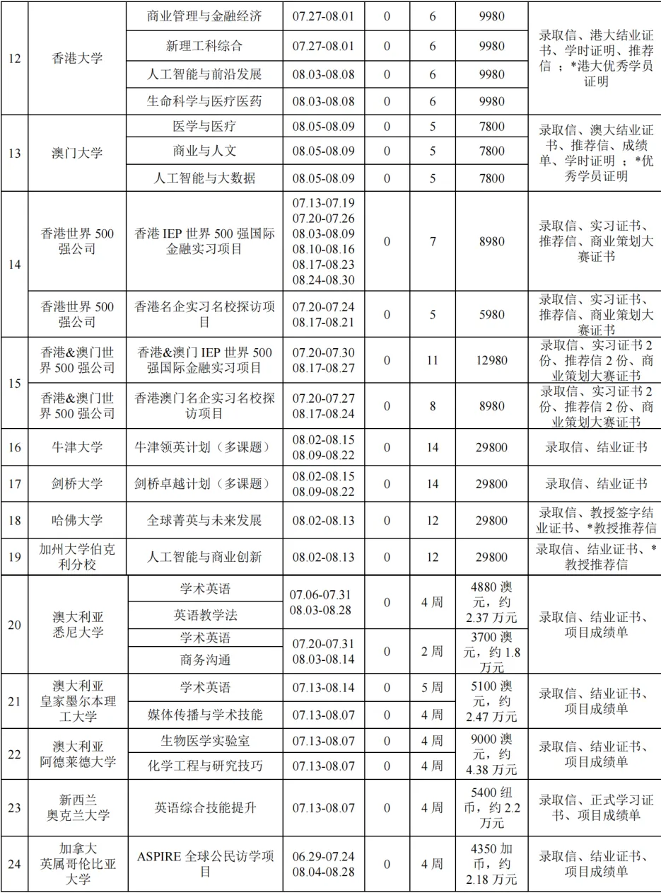 以上项目详情请见项目简章;包括课程时间、课程内容、项目收获、住宿、后勤等以简章为准;