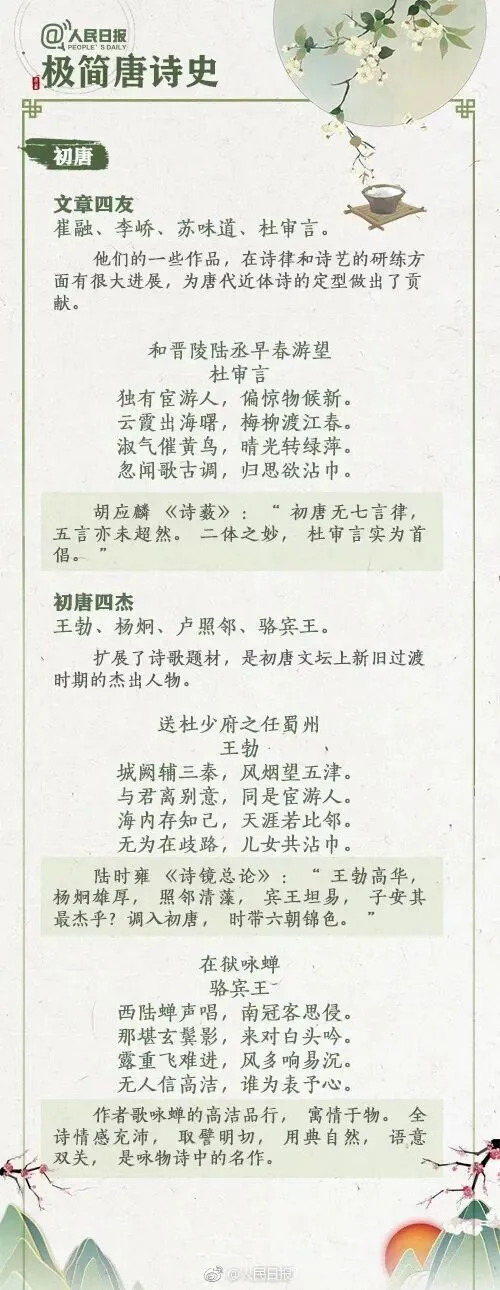 最美唐诗宋词!今天,小诵为大家带来了《人民日报》官微推荐的最具代表性的35首唐诗、27首宋词,陪孩子一起速览唐诗、宋词史,感受传统文化之美,值得收藏!