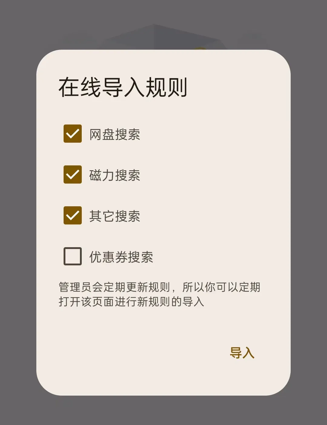 点击下方“我的”——“规则列表”,点开右上角三横,选择导入默认。温馨提示,如果不想系统充满广告的话,记得不要点击“优惠券导入”。