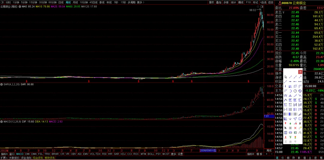我们不止一次的讲过,云南铜业在2005~2007年这轮周期上行过程中的表现,那是一个戴维斯双击的典型例子。