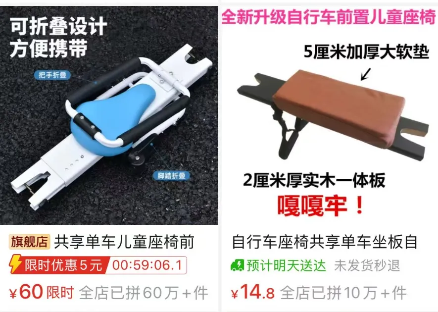 两款网络热销的“共享单车儿童座椅”