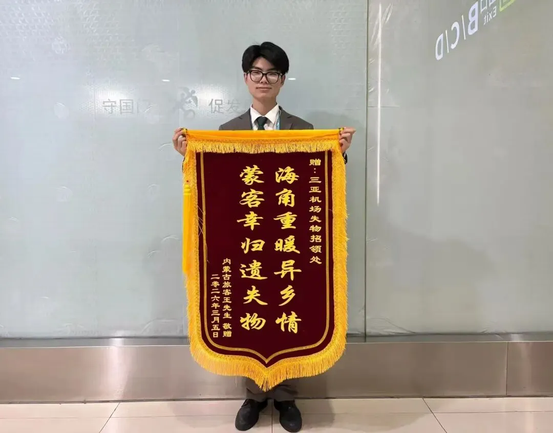 3月5日清晨,三亚机场失物招领处接到一通焦急的求助电话,一位来自内蒙古的老年旅客,在前往机场途中不慎将贵重物品遗落在网约车上,因行程紧张且无法联系上司机,慌乱不已。失物招领员周杭接到电话后,第一时间耐心安抚旅客情绪,详细了解情况。考虑到老人不熟悉手机操作与平台沟通,他主动承担全部协调工作,一边持续尝试联系司机,一边紧急对接网约车平台客服,说明情况并协助查找。经过不懈努力,周杭成功确认遗失物品下落,并协调司机将物品送至机场失物招领处,及时告知老人喜讯。老人顺利返程后,特意从内蒙古邮寄来一面锦旗,上书“海角重暖异乡情,蒙客幸归遗失物”,以表达由衷谢意,也彰显了三亚机场暖心服务与责任担当。