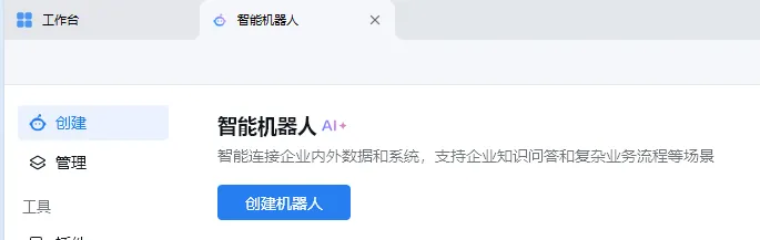 在企微首页进入工作台,搜索机器人,点击创建机器人,选择手动创建。