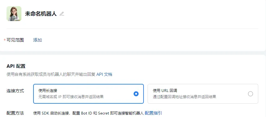 API配置选择长连接方式。