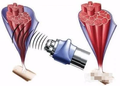 人体组织中所含的大量微小气泡在冲击波的作用下急速膨胀、破裂,出现高速液体微喷射,产生撞击效应,释放出巨大的能量,并产生高温、高压具有强大冲击力的微射流。空化效应有利于疏通闭塞的微细血管,松解关节软组织的粘连。