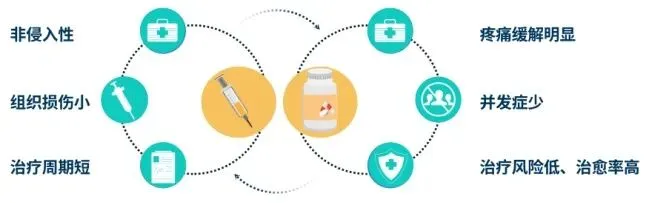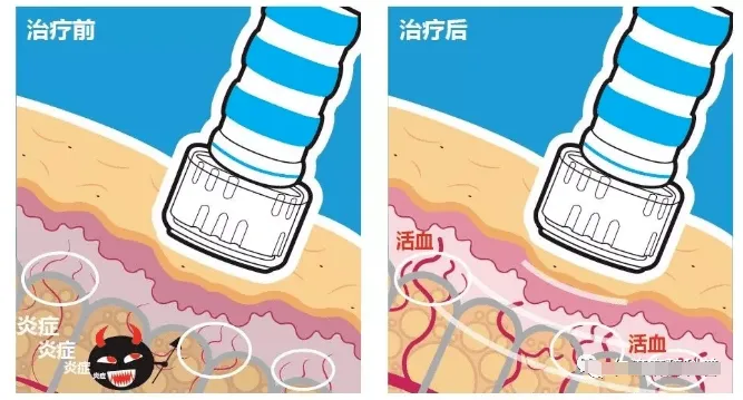由于对人体组织的作用力较强,可直接抑制神经末梢细胞,从而缓解疼痛;可改变伤害感受器对疼痛的接受频率,由此缓解疼痛;通过改变伤害感受器周围化学介质的组成,抑制疼痛信息的传递;可引起局部充血,从而促进炎症的消退。
