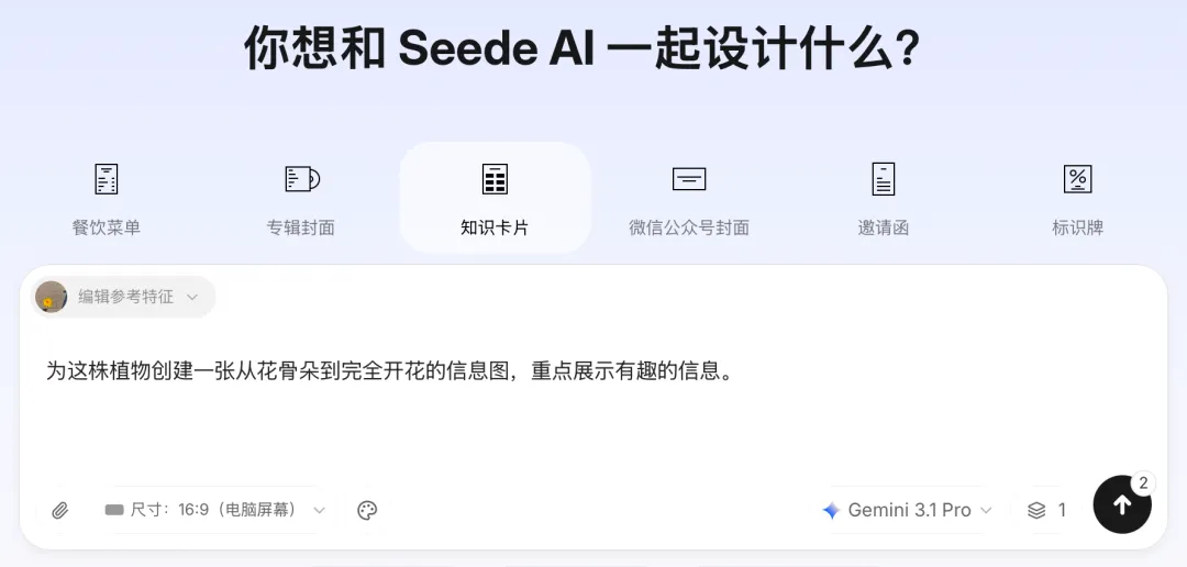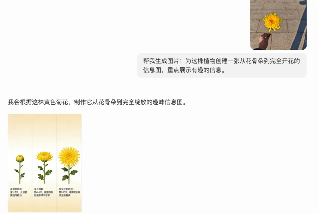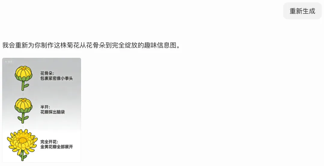 不同场景的AI文生图工具,差距在哪里? 有一张自己在室外摆的黄色菊花图,需要设计一张图片:展示其从花骨朵到完全绽放的效果。 提示语: 为这株植物创建一张从花骨朵到完全开花的信息图,重点展示有趣的信息。 1、豆包: 重新生成之后的效果: 2、Seede AI 选的“知识卡片”,生成中: 效果如下: 选“海报”,效果如下: 模型选择:Gemini 3.1 pro 3、Nano Banana Pro 生成的效果: 不同场景的AI文生图工具,差距在哪里? 总结: 1、工具的选择很重要,但更重要的是选对模型。 2、豆包够用,就没必要选择更高级(要花钱的)的工具。 3、Seede AI 哟海量的模板,比如制作海报,直接使用形成的提示语,要学会偷懒。 4、Nano Banana Pro是高级感,大片感,费用不低。