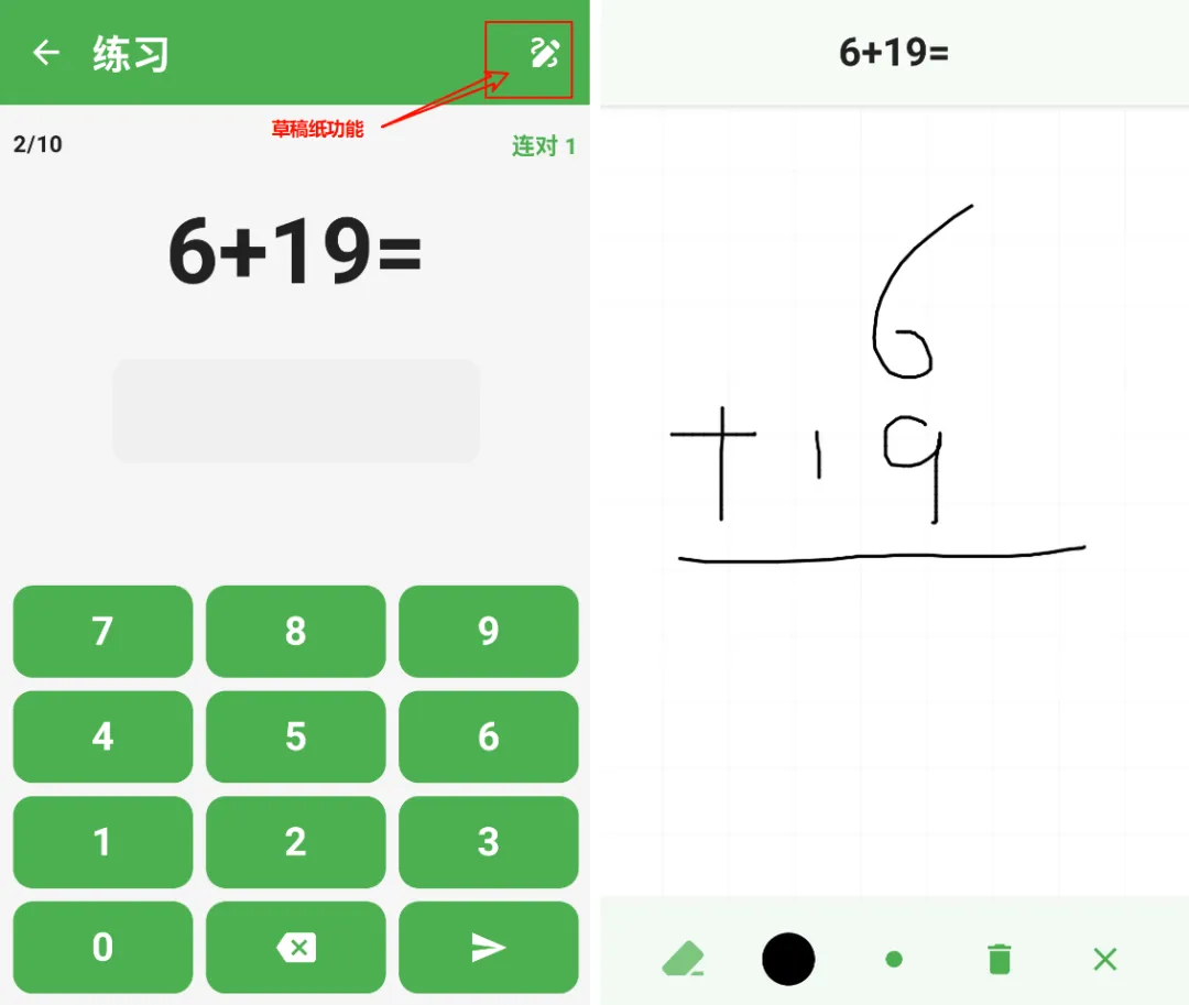 在做题页面,如口算不出来,软件很贴心,带草稿纸功能