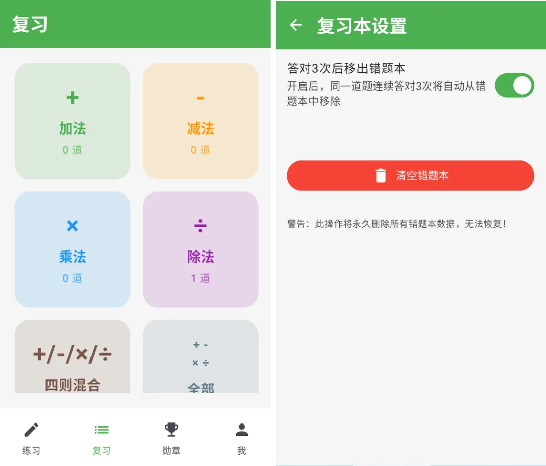 算数练习神器!错题清零+勋章激励,孩子越练越有劲儿