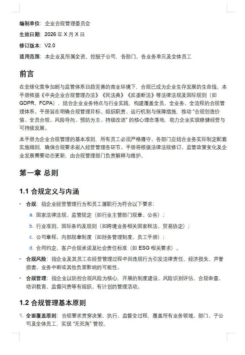企业合规管理规范制度(2026版电子版)