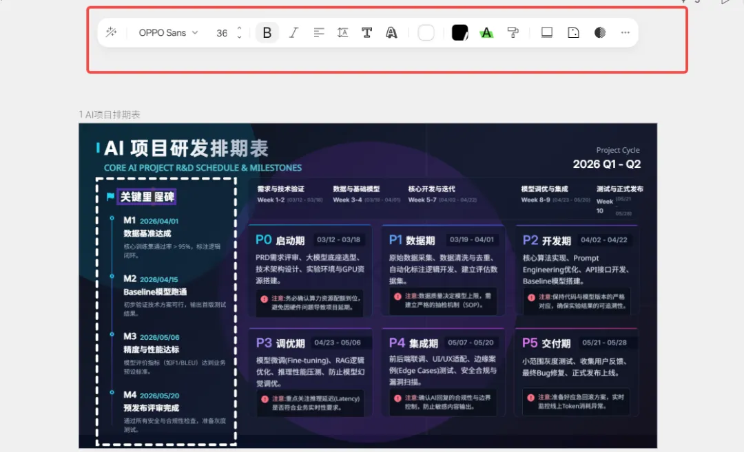 点击生成按钮之后,就进入了编辑界面。你会发现它直接就给你分好了图层和文本框,除了插入可编辑图表、表格,就和做ppt没什么两样。