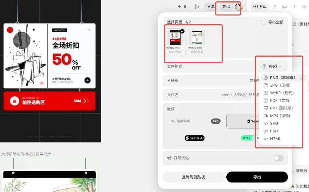 如果说在线编辑是seede AI的精髓,那么导出格式则是它的王炸。