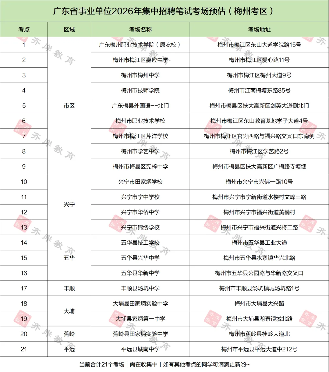 (注意:梅州城区考点中的↓↓这三个考点名称比较相似,大家要留意,不要走错考点哦!)