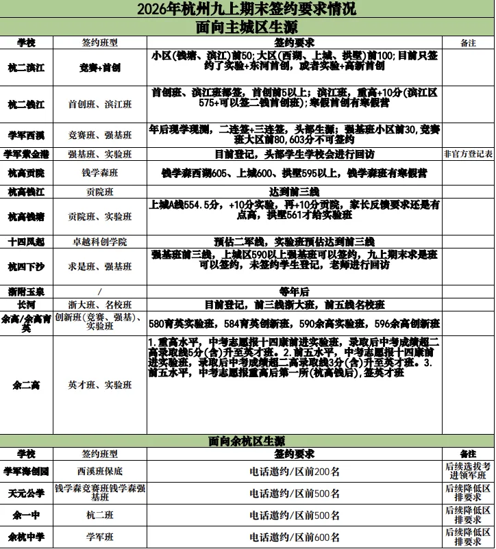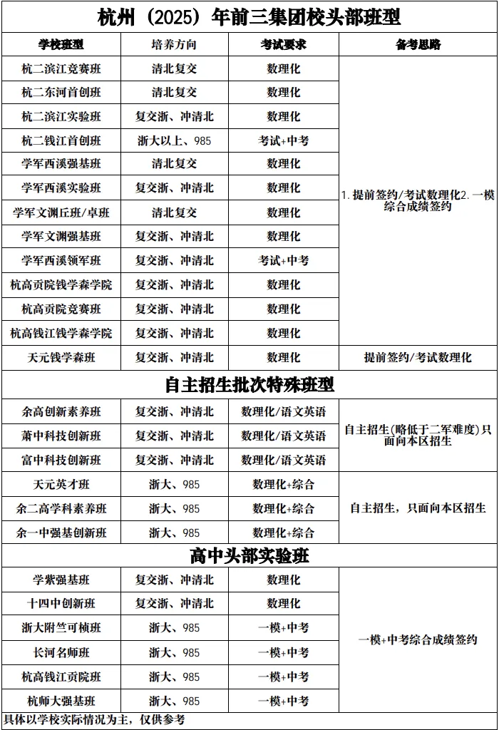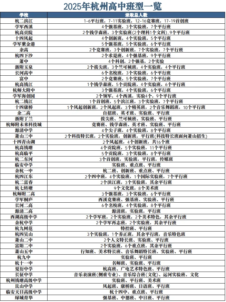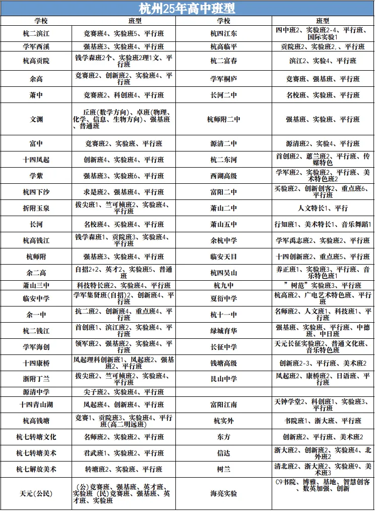 杭州市各区高中重点班型说明
