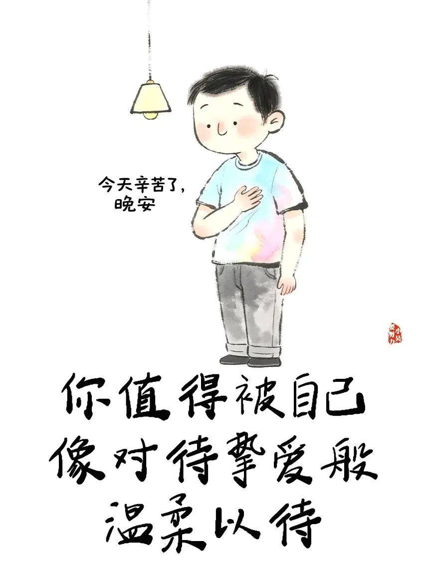 从今天开始,睡前花一分钟,把手轻轻放在胸口,对自己说:“无论今天发生了什么,哪怕搞砸了,我也依然爱你,你已经尽力了。”把对外人的那份耐心,多分一点给你自己。