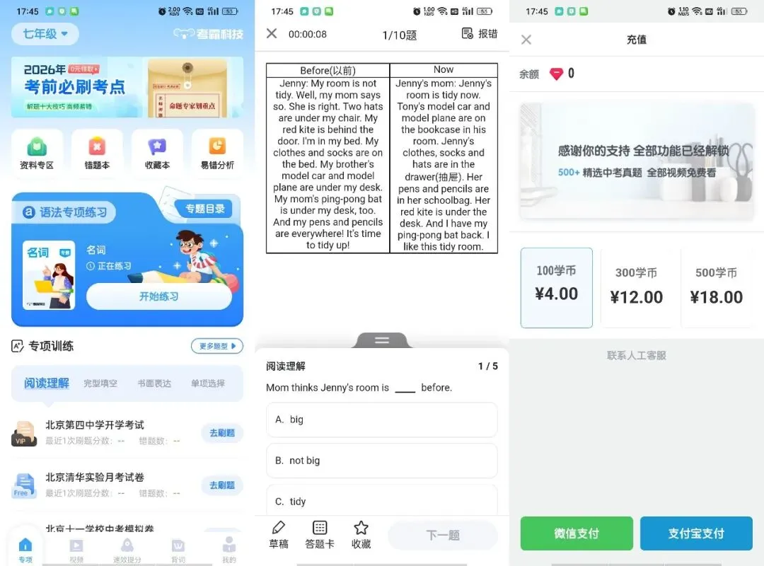 2. 初中英语题霸(练题,纠错,视频讲解,手机号登录)1.8.8